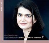 | - Sonata no. 1 in D minor, op. 28 - Sonata no. 2 in B flat minor, op. 36 - Vocalise in C sharp minor, op. 34 no. 14 Arranged for solo piano by Kocsis/Izman - Oriental sketch in B flat major - Morceau de fantaisie „Delmo“ in G minor - Transcription of Rimsky-Korsakov‘s The flight of the bumblebee in A minor order this cd by sending an e-mail to: info@marianaizman.com (€ 10,00 + € 6,95 shipping) This cd is available as a package of 5 discs, containing the complete solo works of Rachmaninoff, featuring Thomas Beijer, Nino Gvetadze, Hanna Shybayeva, Pieter-Jelle de Boer and Mariana Izman. The full Rachmaninoff 5cd box including the Mariana Izman cd can be ordered through:www.ypf.nl |